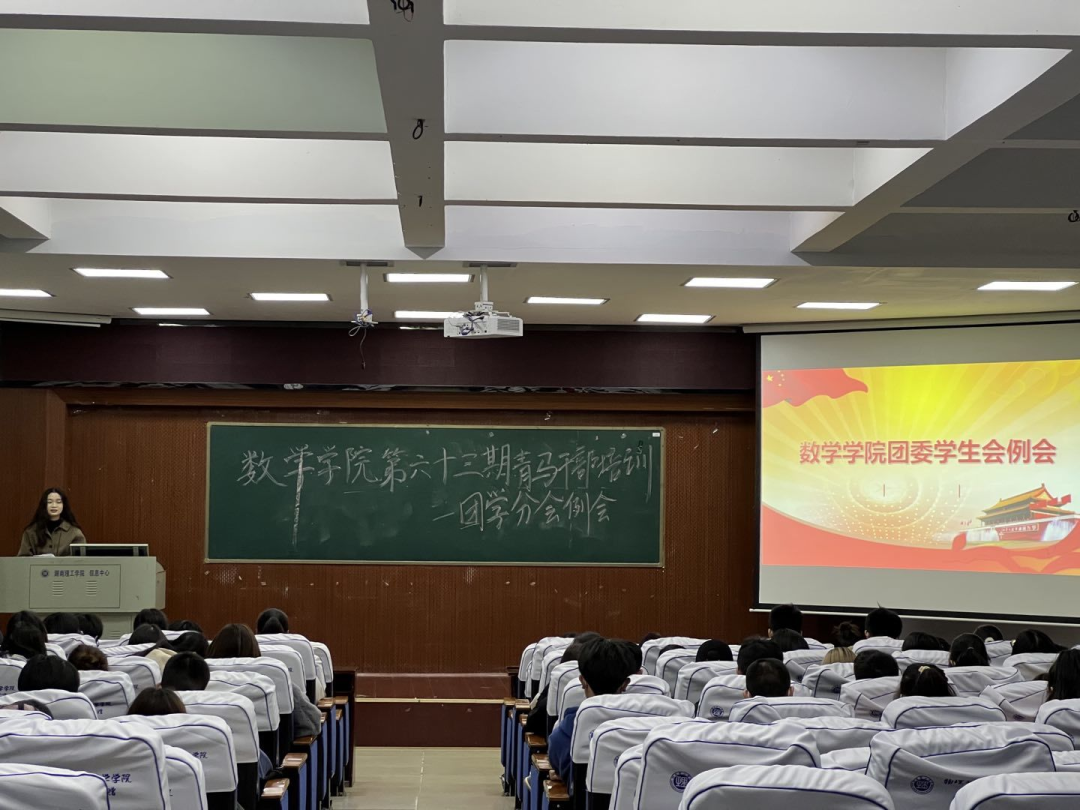 本站讯11月29日,数学学院于六栋学术报告厅召开了第六十三期青马干部培训团学分会例会,本次会议由数学学院团学分会主席匡志杰主持,太阳成集团tyc151cc副书记齐亮菲、全体辅导员出席,团学分会全体成员与会。