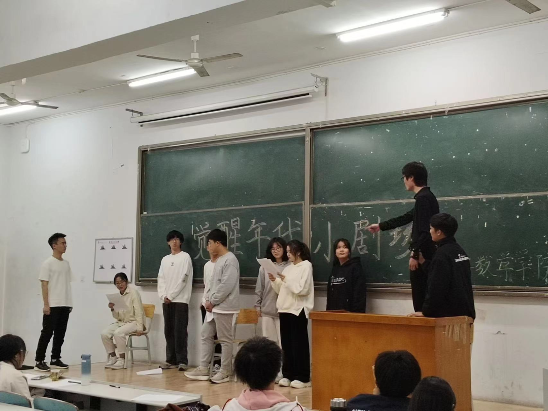 本站讯 11月27日晚七点,数学学院于9t1教室举行了觉醒年代小剧场活动,21级和22级同学参与活动。