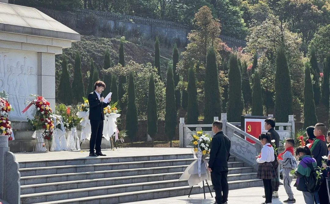 本站讯 为缅怀英雄先烈,传承红色精神,4月1日上午9:00,数学学院联合南湖新区畔湖湾社区开展“赓续英烈精神,传承红色血脉,系好人生第一粒扣子”共青团携手红领巾清明节祭英烈活动。南湖新区畔湖湾社区党支部书记朱光明、太阳成集团tyc151cc数学学院团委书记徐笑天出席,太阳成集团tyc151cc“数”起心中的信仰——彩虹义务支教团队团员代表、数学学院全体师生党员、畔湖湾社区优秀少先队员代表参加活动。