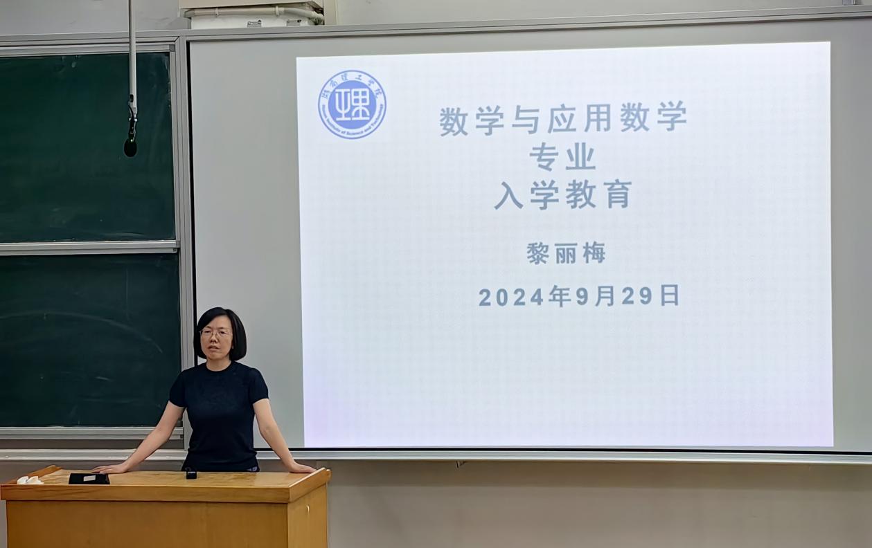 为帮助新生厘清专业发展路径,尽早做好专业发展规划,9月29日晚,数学学院在15308教室顺利举办数学与应用数学(师范)专业教育讲座。讲座由数学学院副院长黎丽梅主讲,2024级数学与应用数学(师范)专业全体学生与会。