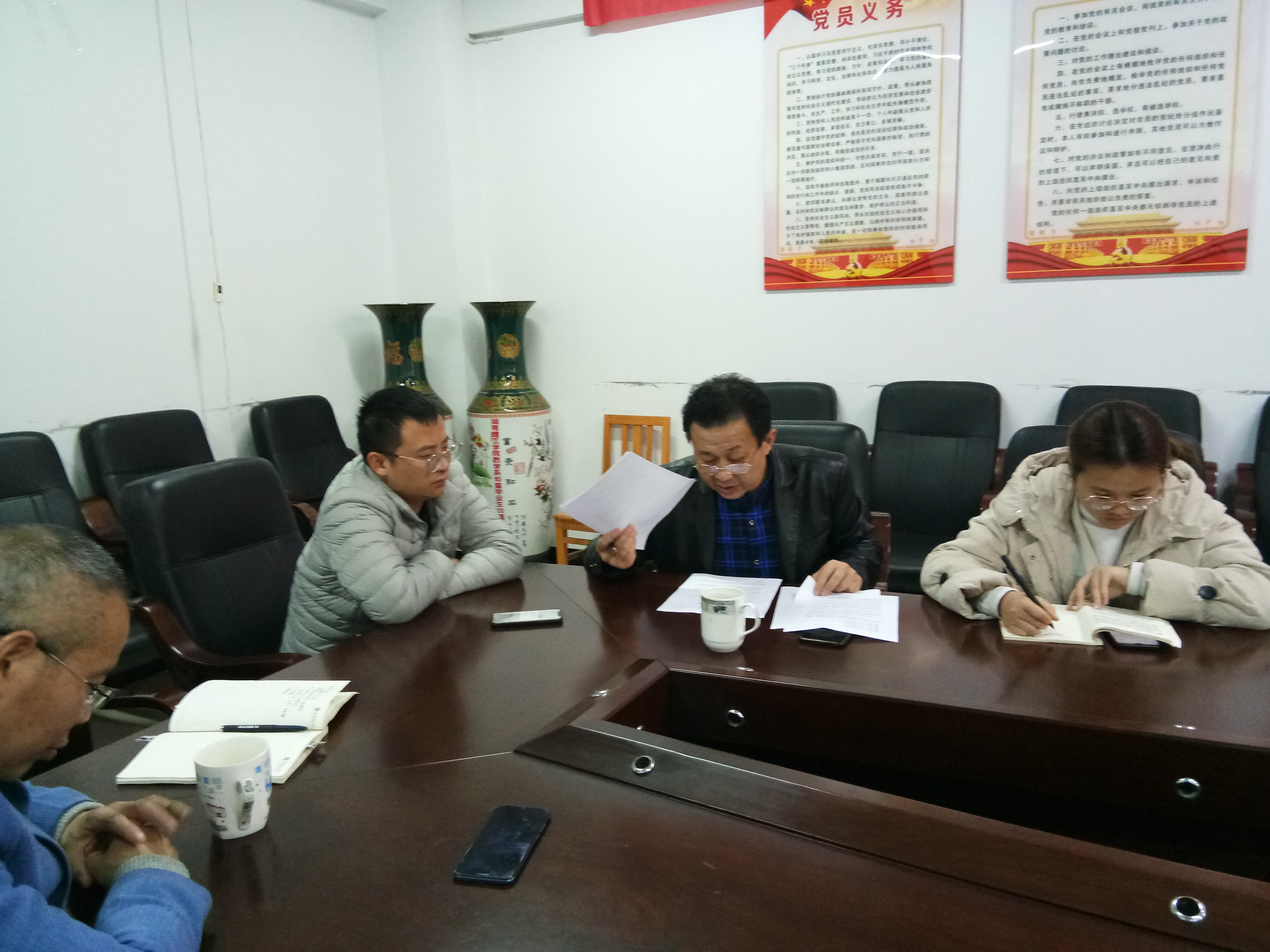 孙明保同志强调,在第二批“不忘初心、牢记使命”主题教育中学习贯彻党的十九届四中全会精神,是党中央重大决策部署。党员同志要从讲政治的高度和党员责任义务的自觉来提高认识,深入开展学习,坚持不懈锤炼忠诚干净担当的政治品格。孙明保同志要求,党支部要肩负起教育管理监督党员的主体责任,持续推进学习贯彻十九届四中全会精神。随后传达12月16日学校主题教育工作布置会会议精神,并就专题民主生活会,支部主题教育落实情况,党总支主题教育自查评估等工作进行了具体布置。