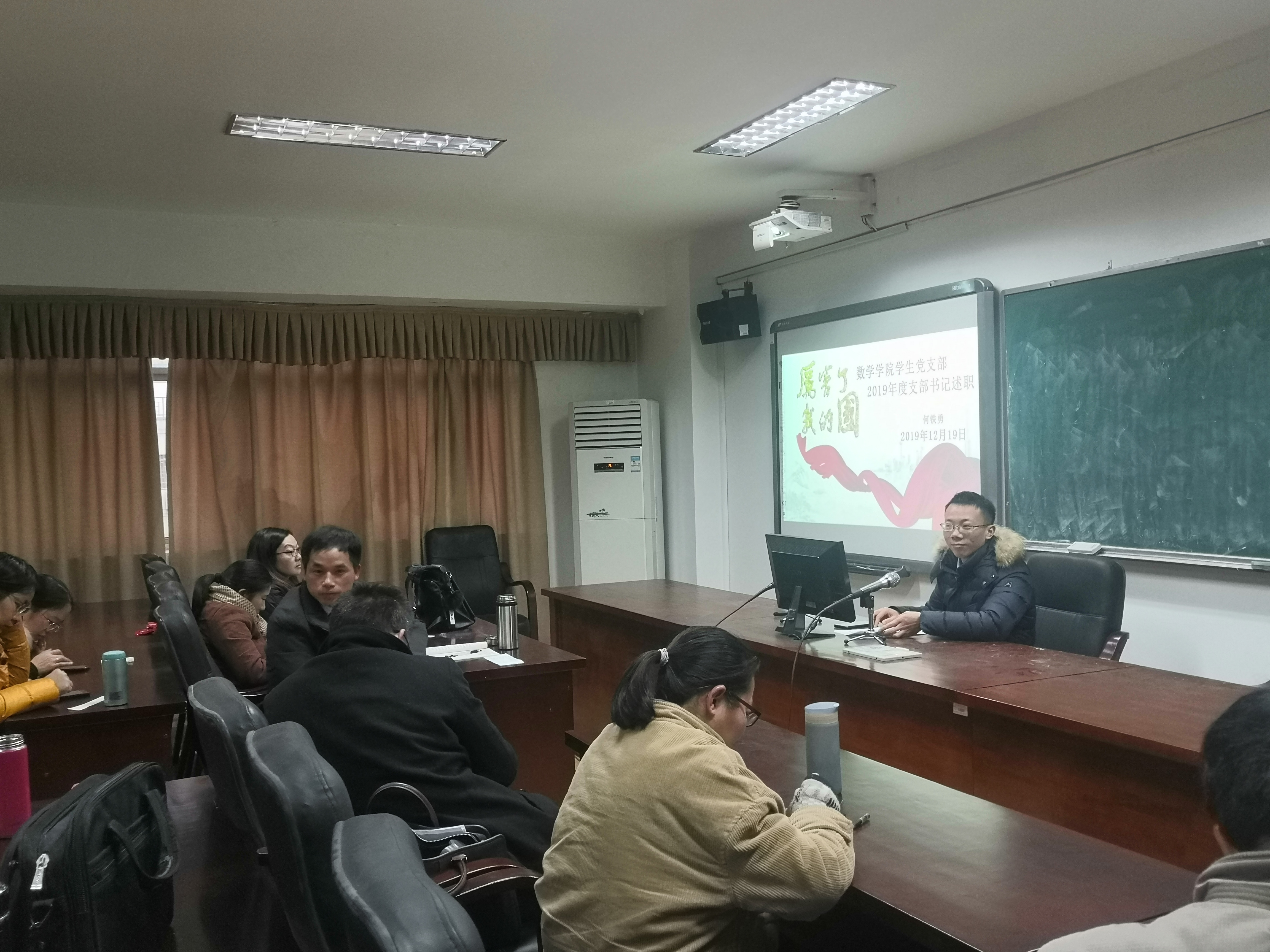 2020年1月10日下午16:30,数学学院于5511举行2019年度党支部书记述评考核暨教师一、二支部书记述职会议。党总支书记孙明保,院长兼党总支副书记江五元、总支委员李松华出席会议。教师一、二支部全体党员参加。党总支副书记易政群主持会议。