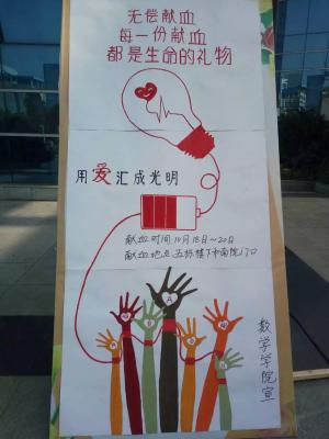 数学学院团总支与岳阳中心血站联合举办的大型校园无偿献血活动正式开始,活动于10月20号结束,在此期间无偿献血车会开至五栋教学楼门前采集血液。早自习结束,许多同学便前来咨询献血相关知识并登记献血,虽然同学们热情高涨,但是为了保障献血者与被献血者的生命安全,工作人员要求前来献血的同学填写真实的健康信息,从而判断是否合适献血,医生只对部分适合献血的同学进行了抽血工作;“献血能够帮助他人,是一件很有意义的事情。”献血志愿者肖航同学如是说。