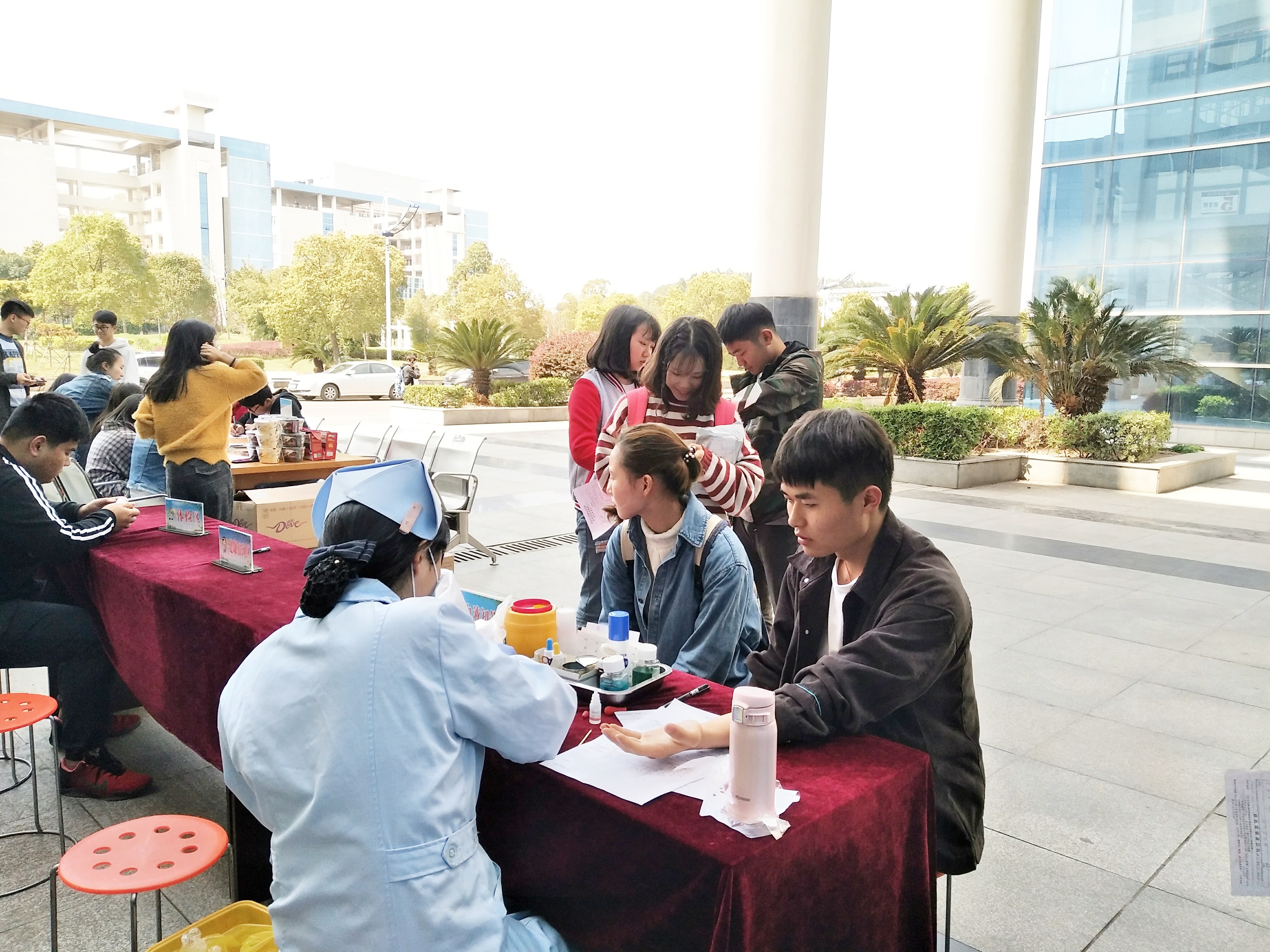 献血日伊始,五栋教学楼大厅内聚集了来自各个学院、各个年级的同学,他们积极报名进行登记、体检与献血。活动现场由团学分学生干部与青年志愿者中心志愿者共同协调配合医护人员工作,他们为同学们答疑解惑并细心告知献血前后的注意事项,记录献血志愿者的基本信息以及配发献血证与活动纪念品。据了解,此次活动共有107名同学成功参与献血,展现了我校学生对于无偿献血的爱心与热情。